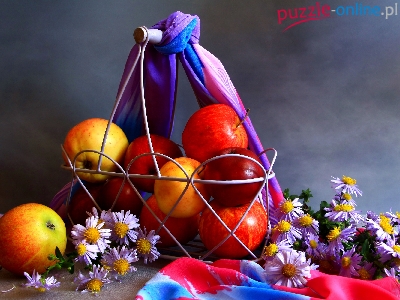 Szal, Margerytki, Metalowy, Koszyk, Jabłka