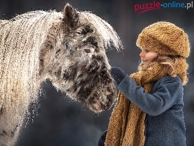 Szalik, Kuc szetlandzki, Dziewczynka, Czapka, Koń