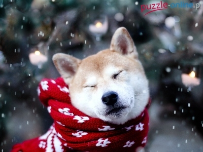 Puzzle Szalik, Pies, Akita Inu, Śnieg