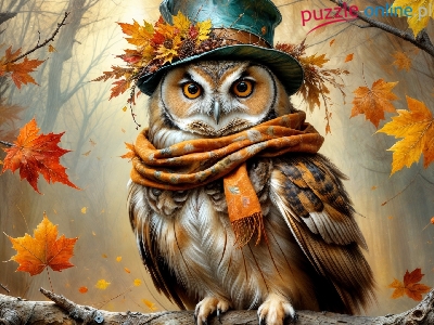 Jesień, Czapka, Sowa, Szalik, Grafika, Las