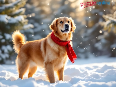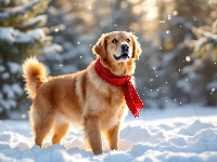 Szalik, Zima, Czerwony, Grafika AI, Golden retriever, Pies, Śnieg