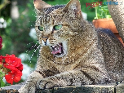Puzzle Kotek, Szary, Kwiatki