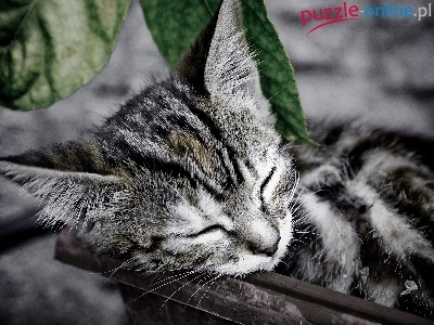 Puzzle Kotek, Szary, Liście