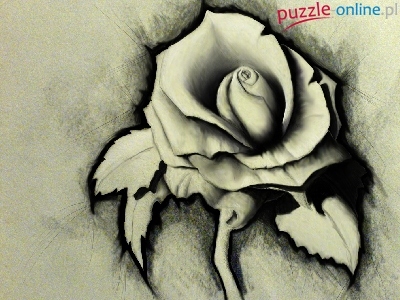 Puzzle Szary, Naszkicowana, Róża, Papier