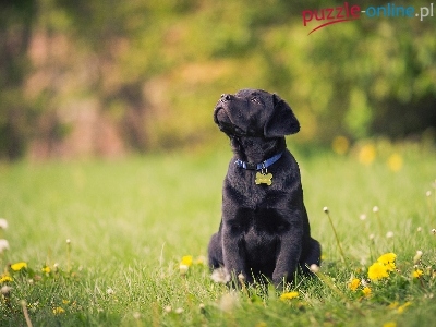 Polana, Szczeniaczek, Las, Słodki, Labrador retriever, Kwiaty