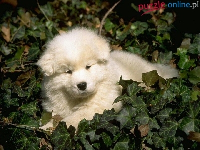 Puzzle Szczeniak, Piesek, Biały, Liście