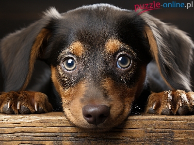 Spojrzenie, Jamnik, Pies, Szczeniak, Deska, Leżący