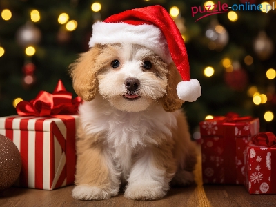 Mikołajki, Szczeniak, Pies, Prezenty, Czapka