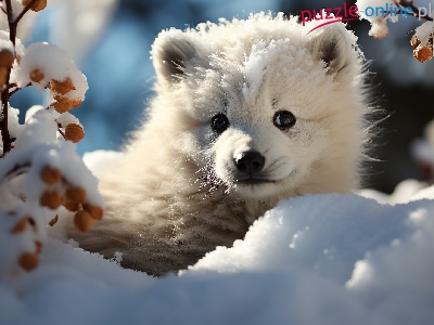 Biały, Szczeniak, Pies, Śnieg, Zima