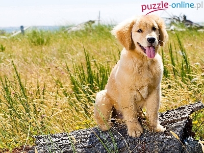 Puzzle Łąka, Słodki, Szczeniak, Trawa