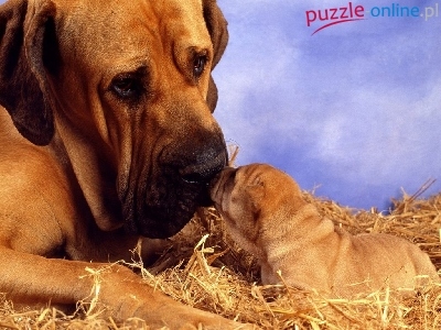 Puzzle szczeniak, Mastif neapolitański, słodki, słoma
