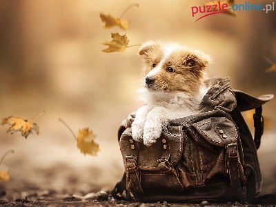 Puzzle Torba, Pies, Liście, Szczeniak