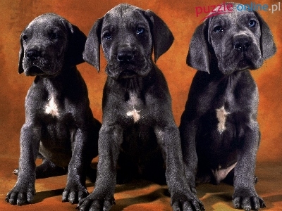 Puzzle Szczeniaki, Trzy, Czarne, Dog niemiecki