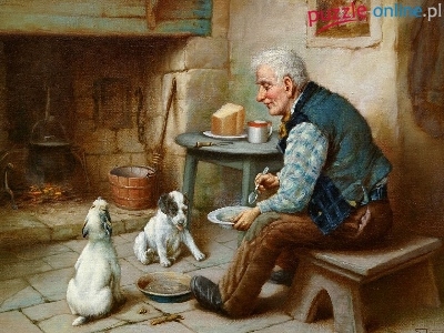 Puzzle Szczeniaki, Mężczyzna, Dwa, Psy