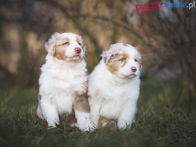 Szczeniaki, Trawa, Dwa, Psy, Owczarki australijskie