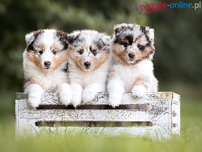 Trzy, Szczeniaki, Psy, Skrzynka, Trawa