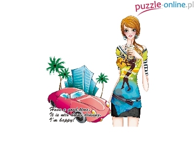 Puzzle Kobieta, Szczęśliwa, Samochód