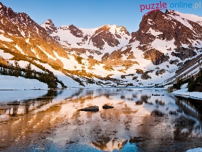 Śnieg, Odbicie, Góry, Szczyty, Jezioro
