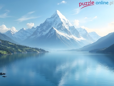 Puzzle Ośnieżone, Jezioro, Góry, Szczyty