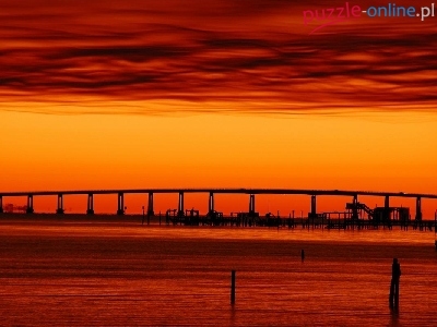 Puzzle Szeroka, Zachód Słońca, Most, Rzeka