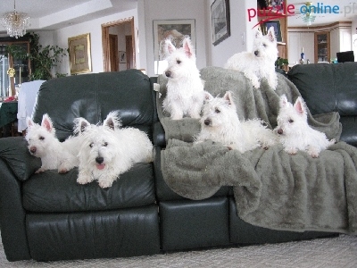 czarna, sześć, West Highland White Terrier, kanapa