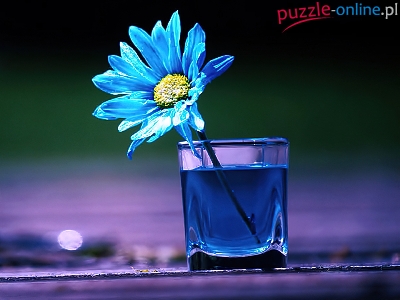 Puzzle Szklanka, Niebieski, Kwiatek, Woda