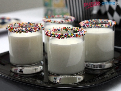 Puzzle szklanki, mleko, kolorowa posypka