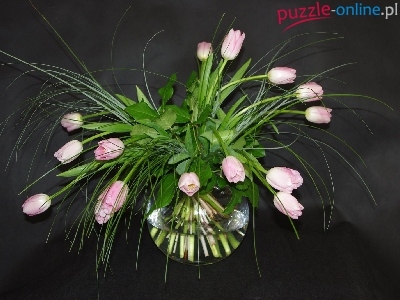 Puzzle Szklany, Białoróżowe, Tulipany, Wazonik