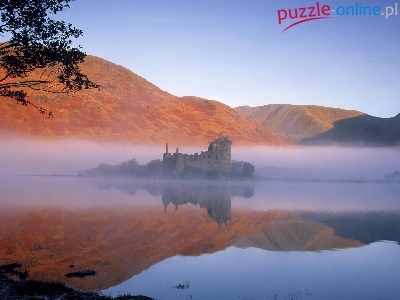 Miejscowość Dalmally, Jezioro Loch Awe, Zamek Kilchurn Castle, Ruiny, Szkocja