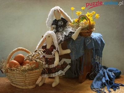 Koszyczki, Szmaciane, Szal, Kwiaty, Wielkanoc, Jajka, ZajÄ…czki