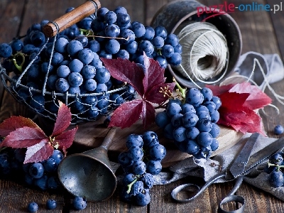 Winogrono, Sznurek, Nożyczki, Koszyk, Kompozycja, Liście, Lejek