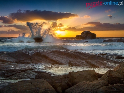 Sztorm, Skały, Słońca, Morze, Fale, Zachód