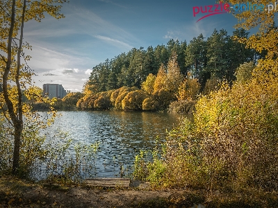 Pożółkłe, Staw, Jesień, Szuwary, Liście, Drzewa