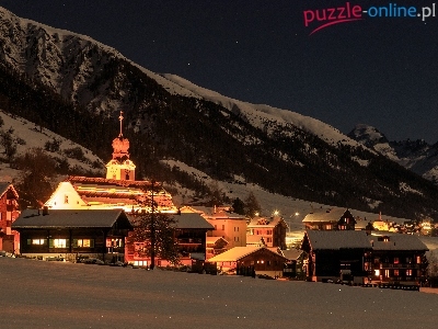 Puzzle Szwajcaria, Góry, Domy, Światła