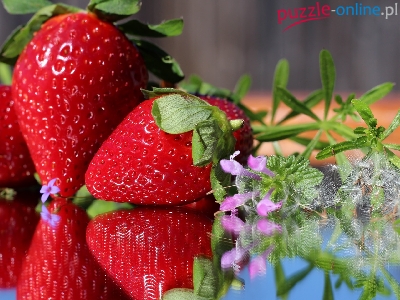 Puzzle Szyba, Truskawki, Kwiaty, Odbicie