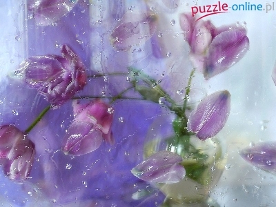 Puzzle Szyba, Fioletowe, Tulipany, Deszcz