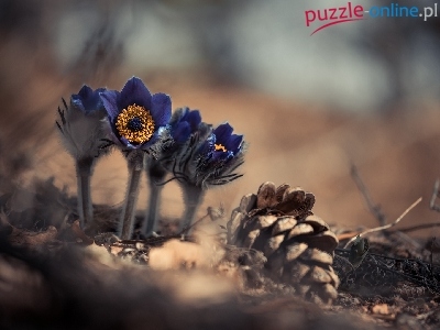 Puzzle Szyszka, Kwiaty, Sasanki, Rośliny