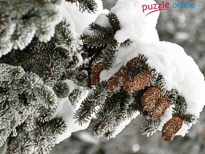 Puzzle Åšnieg, Choinka, Szyszki, Zima