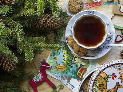 Herbata, Szyszki, Koniki, Filiżanka, Ciastka, Kompozycja, Pudełko, Gałązki