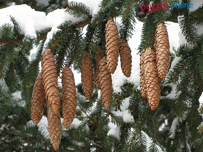 Puzzle Szyszki, Gałązka, Świerku, Śnieg