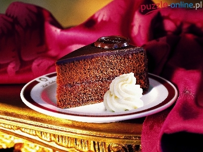 Talerz, Serweta, Ciasto, Czekoladowe, Stolik