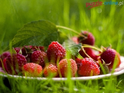 Puzzle Talerz, Zielona, Trawa, Maliny