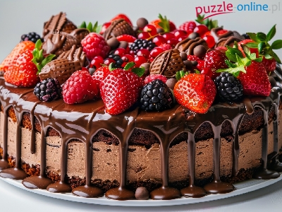 Jeżyny, Ciasto, Truskawki, Talerz, Owoce, Czekoladowe, Polewa
