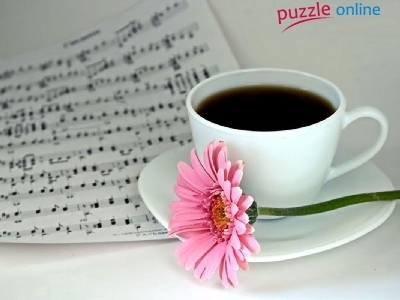Gerbera, Talerzyk, Kawa, Filiżanka, Różowa, Biała, Nuty