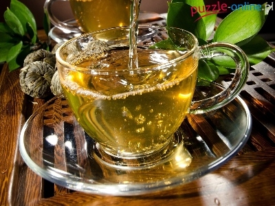 Talerzyki, Szklane, Listki, Herbata, Filiżanki, Zielone