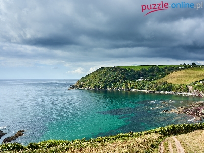 Kornwalia, Morze, Zatoka, Talland Bay, Anglia, Wzgórze