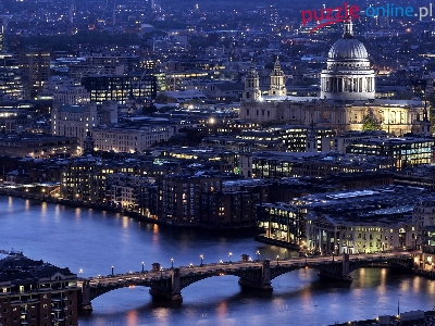 Katedra św. Pawła, Londyn, Mosty, Anglia, Miasto nocą, Rzeka Tamiza