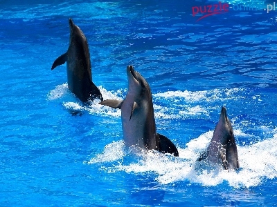 Puzzle Tańczące, Woda, Trzy, Delfiny