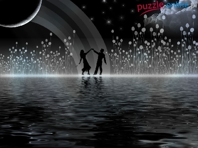 Taniec, Grafika, Noc, Ludzie, Woda