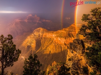 Wielki Kanion Kolorado, Arizona, Drzewa, Stany Zjednoczone, Park Narodowy, Tęcza